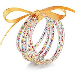 Super cute and super stylish, this set of glitter jelly bangle bracelet set is the perfect addition to a 10-year-old girl’s jewelry box! My daughter LOVES bracelets but gets frustrated by how easily they break. I am so glad I bought her this set (and I’ve gifted it to my 10 year old neices as well) because there is no worry about them breaking and they stay looking brand new even after lots of wearing.