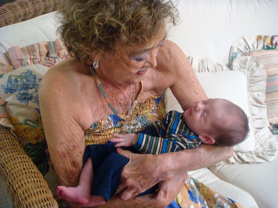 Mom said when he goes cross-eyed that he’s focusing! Looks like he’s focusing on his Gramma!