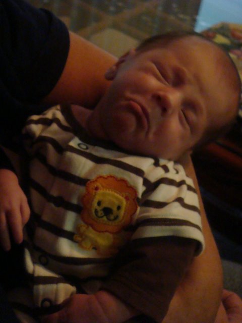 Saturday we somehow managed to still be alive! Zach got me Bagel World (so amazingly yummy) and Uncle Jeff, Aunt Lauri, and Sabrina stopped by to meet Kye! They were so sweet! Uncle Jeff got tears in his eyes (like always..those Bublitz men are emotional) and they even brought us an adorable outfit and little blue rattle! We really want a family like theirs as they have 2 boys and 2 girls and spread out their ages. They are a great family and it meant a lot to me that they stopped by!