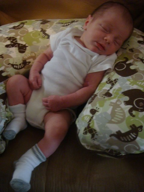 Breastfeeding has gotten much, much easier. He actually has latched on himself a few times without me having to force him! I’ve done away with all the extra pillows and now just use the Boppy. I have to sit Indian style for the boppy to be high enough but at least I don’t have a million pillow scattered everywhere! He’s a funny eater though. During the day he’ll do what he “should” which is 15 min per breast but at night he barely wants ANY. I have to force him awake to eat longer than 5 minutes and he typically only wants one breast!