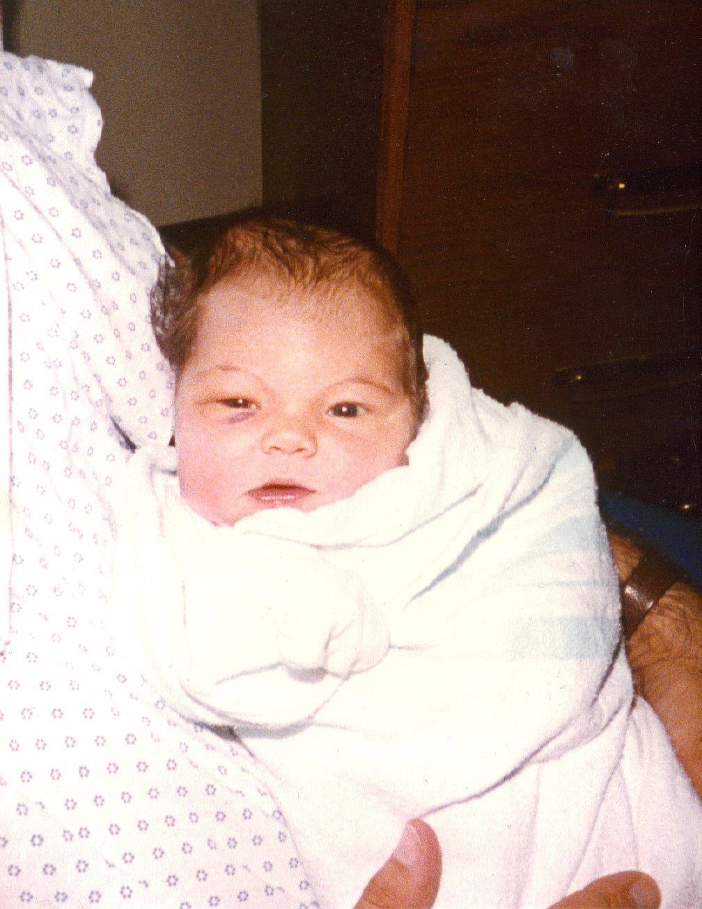 This is me RIGHT after I was born…at least we know where he got the huge cone head from haha! Now looking at this though I do see some similarities! The hair, nose and cheeks!